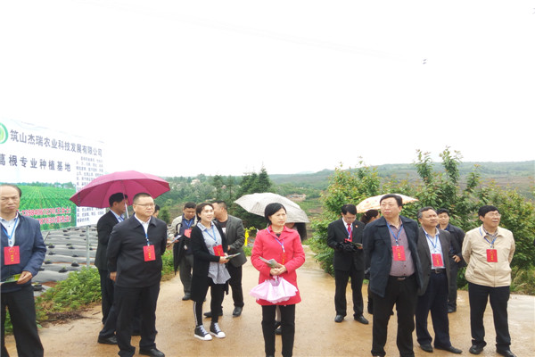 活动当日,小雨不断,气温较低,但是丝毫没有影响参加活动人员的热情,大家按行程先后实地调研了十字乡四甲村山豆根种植项目、石朱桥水库上水管建设项目、十字乡罗院村养牛项目和十字乡大院村葛根种植项目情况,并认真听取每个项目点上有关项目负责人的情况介绍。每到一处,代表们或取出纸笔认真记录、或认真询问项目进展情况、或拿着手机拍照,纷纷为十字乡产业扶贫项目取得的成就和饮水工程建设的壮举点赞。